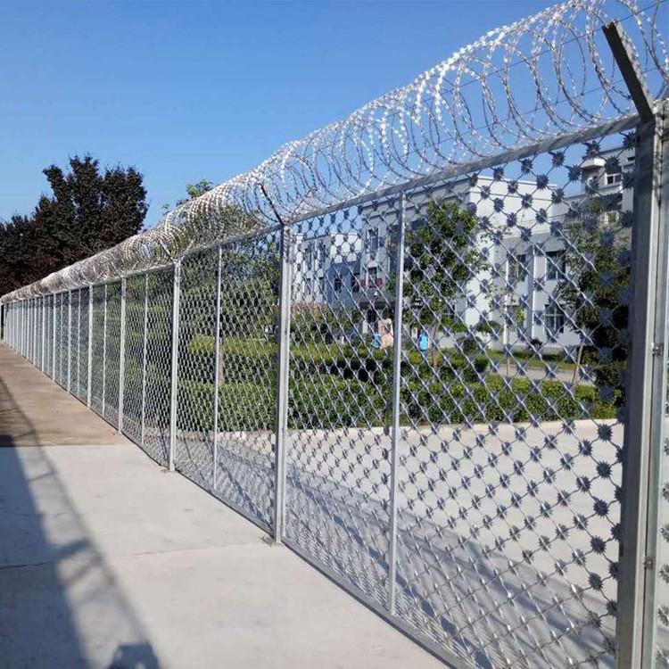 監獄防攀爬梅花刺隔離網又叫太陽花刺片隔離網。行業內簡稱梅花刺網,其特點為堅固牢靠,使用壽命長且防止攀爬等,梅化刺隔離網一般用于監獄大門,探監門。由于其成本造價高,所以還沒有廣泛替代焊接式隔離網。梅花刺片防逃網整體熱鍍鋅居多,也可噴涂,噴塑,顏色多田草綠色和灰色,梅花刺片防爬網-般采田整體執鍍鋅外理 可做更化試驗(附檢測報告),隔離網整體鍍鋅在內陸自然環境下.鋅層要求使用不低千十年。