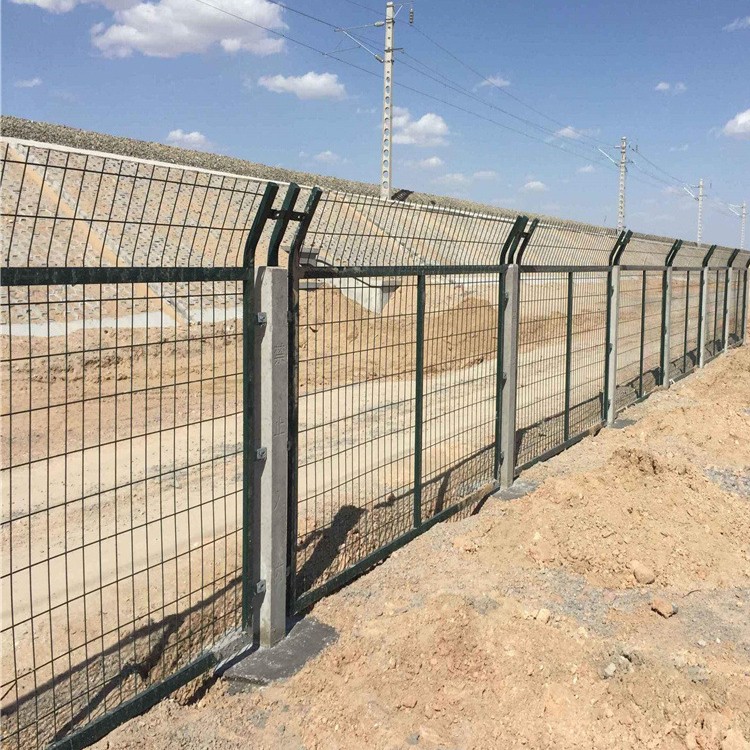鐵路防護柵欄是建設在鐵軌兩旁的防護網,防止非工作人員進入,保障火車的正常通行。一般采用高強度低碳鋼絲焊接,后經表層鍍鋅加浸塑,使其防腐防銹能力達到20年以上,外觀較為美觀,也可以由網片直接與立柱卡接、螺栓連接和連接件鉚接,角度可任意調整。高鐵護欄施工與之前使用的框架護欄網大同小異,相鄰網片中間緊密連接。