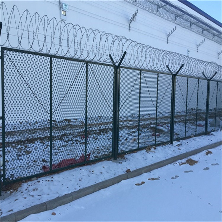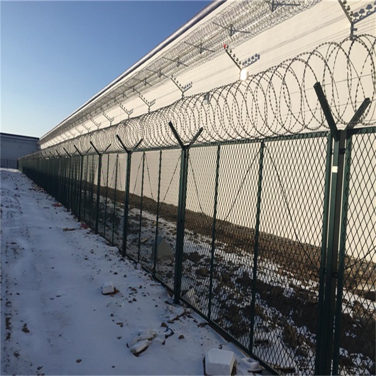 首先監獄金屬鋼網墻一般由網片、立柱、頂部V型網、蛇腹型刀刺網幾大部分及防盜連接配件組成。是一種新型的防護網片由銳角鍍鋅鋼板或不銹鋼板制成,監獄隔離網的材料堅硬,強度高和獨特的設計,不易觸摸,可以達到良好的保護和隔離效果,并且具有結構簡單,經濟實用的優點,監獄隔離網主要用于監獄周圍的保護,安裝簡單且經濟,監獄隔離網與機場隔離網性質基本相同,它們全部由V型支架支柱,加固的焊接網和緊固件制成。