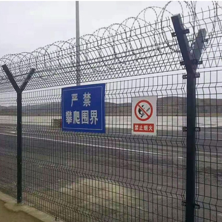 機場圍界隔離網就是應用于機場跑道兩側的隔離網,作用是防止行人誤入跑道,影響飛機正常運行的有效措施,也被稱為機場物理圍界護欄網。機場圍界隔離網也分為機場內隔離與機場外隔離,機場內隔離的要求更高,頂部設置刀刺網,外隔離就比較簡單一些。