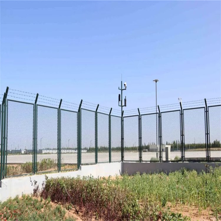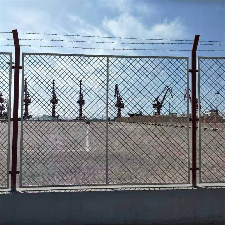 保稅區圍網主要用于,海關,碼頭,港口外圍的隔離防護。網孔: 50*100mm菱形孔,75*150mm 邊框:標準40*40mm,也可做30*40mm,還有48mm圓管;壁厚1.2mm 1.5mm居多 立柱:60*60mm方管 ,或80*80mm,部分采用75mm圓柱(邊框搭配48mm圓管),常用的壁 厚是2.0mm 、2.5mm, 標準高度:網框高2.2+折彎0.4米,寬度(中心距)為1.5米或者3米,頂部拉三道刺繩。 表面處理:浸塑。