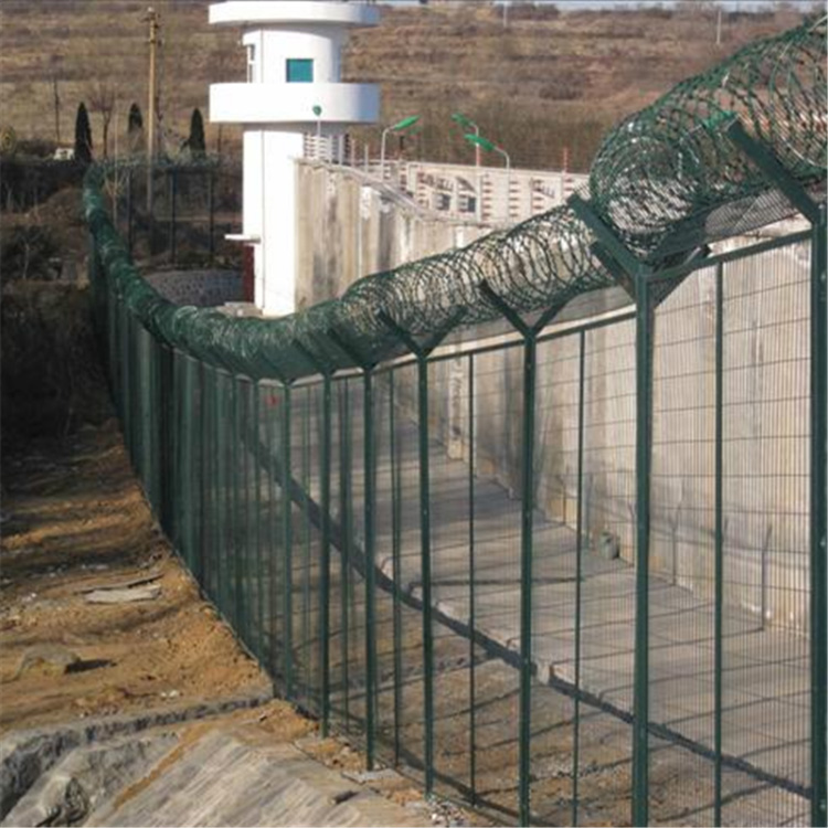 網(wǎng)片的絲徑浸塑后達到6.0㎜,整體硬度大、鋼性強、防破壞能力強。網(wǎng)孔選用50*100mm的尺寸,網(wǎng)孔較小,阻隔性相對較強。匹配30*50mm熱鍍鋅矩形管作為框架,厚度達到2.0mm,不變形,強度大,更堅固實用。立柱采用80*80mm熱鍍鋅管,厚度達到3.0mm制作成“Y”字型,支撐能力強,防破壞、防壓性強。邊框與立柱所有焊接部位均為滿焊,無虛焊無漏焊,確保整體的牢固度。頂部架設(shè)蛇腹型刀刺網(wǎng),刀片鋒利,阻嚇力強,材料選用不銹鋼304材質(zhì),不生銹,更耐用。