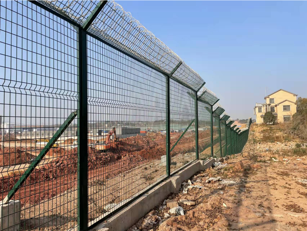 5、機場隔離網臨時定位安裝,在安裝時正確安全,然后澆筑混凝土基礎,并及時維修。