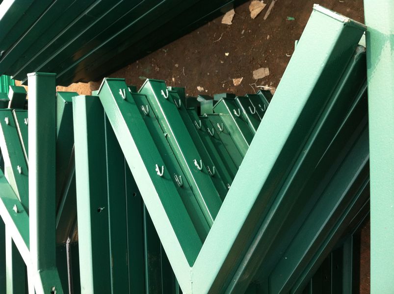 立柱為60X60或80x80的方管,頂端焊有V型之架。或者采用70mmX100mm的掛式連接立柱。產品均為熱鍍鋅后采用高質量的聚酯粉末靜電噴涂,采用國際流行的RAL顏色。