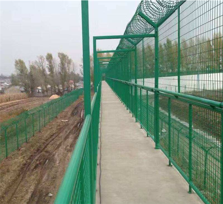 監(jiān)獄看守所隔離護欄網(wǎng)又稱作安全防御護網(wǎng),是由安全立柱(頂部可帶V型),加強型焊接片網(wǎng),安全防盜連接件和刀片刺籠組成,強度和安全防御級別很高。