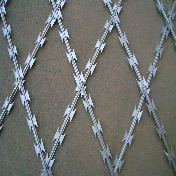 監(jiān)獄刀片鋼網(wǎng)墻是用直條的刀片刺繩直接焊接而成的網(wǎng)片,焊接成網(wǎng)片的刀片刺網(wǎng)擁有了小孔且不可攀爬的優(yōu)點(diǎn),同時(shí)在防護(hù)高度上改善了傳統(tǒng)的螺旋形刀片刺繩,焊接成片刺網(wǎng)尺寸可高達(dá)2米,長度不限,現(xiàn)在大部分監(jiān)獄,看守所,派出所,機(jī)場,重要廠區(qū)等改進(jìn)了原來的防護(hù)形式,越來越多的開始采用焊接式刀片刺網(wǎng)。