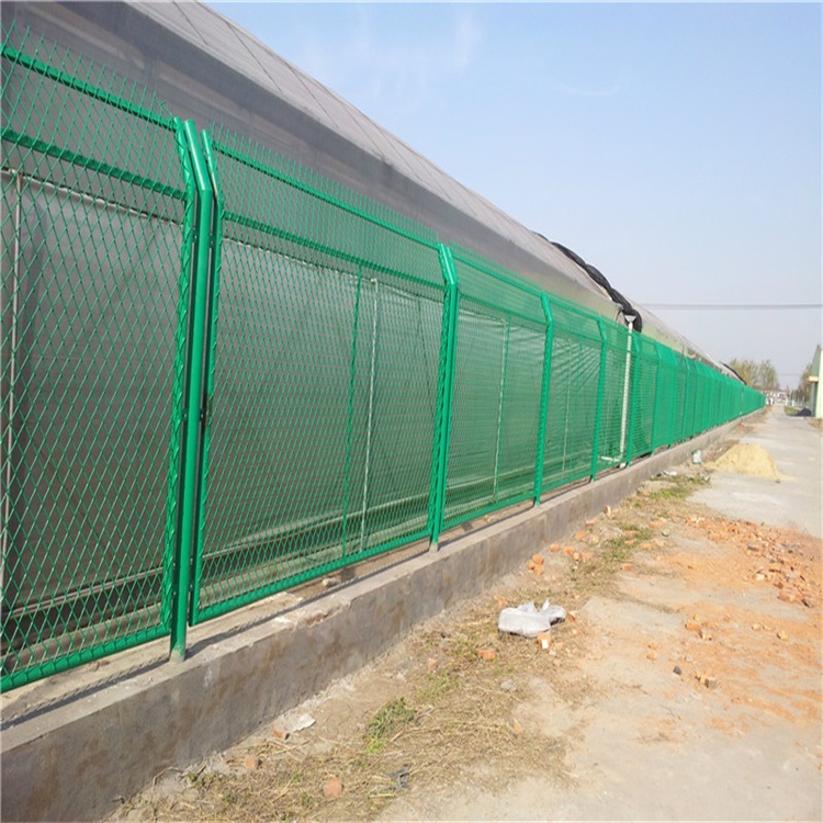 鐵路金屬防護網,鋼板網防護柵欄:主要分鍍鋅防護柵欄、浸塑防護柵欄兩大種類,是以立柱加網片連接而成。選用優質低碳鋼絲焊接。不僅外觀大方,美觀,而且牢固,防腐性好。主要適用于鐵路兩旁及邊界的隔離防護及美化。