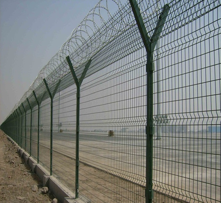 機場鋼筋網圍界是安全防護網,一般選用墨綠色,安裝在機場周圍,用來隔離非工作人員的進入,同時還可以阻擋飛鳥飛入對飛機起飛所帶來的危害。