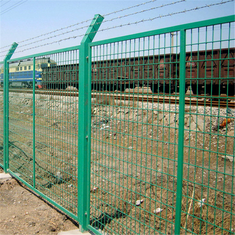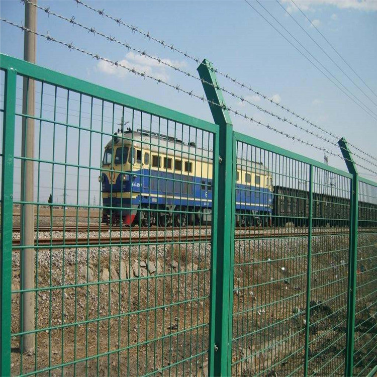 8001鐵路防護(hù)柵欄 鐵路專業(yè)防護(hù)網(wǎng) 鐵路封閉網(wǎng)具有耐用、美觀、視野開(kāi)闊的特點(diǎn),并具有優(yōu)良的防護(hù)性能。整個(gè)鐵路封閉網(wǎng)采用立柱采用混凝土澆筑件,工程造價(jià)低、整體強(qiáng)度高整體穩(wěn)定性好,網(wǎng)體上的彩色塑層具有良好的抗腐蝕和裝飾效果,使網(wǎng)圍界整體和諧美觀。鐵路防護(hù)柵欄主要用于鐵路封閉高速公路護(hù)欄及開(kāi)發(fā)區(qū)圍界和場(chǎng)區(qū)圍網(wǎng)使用。