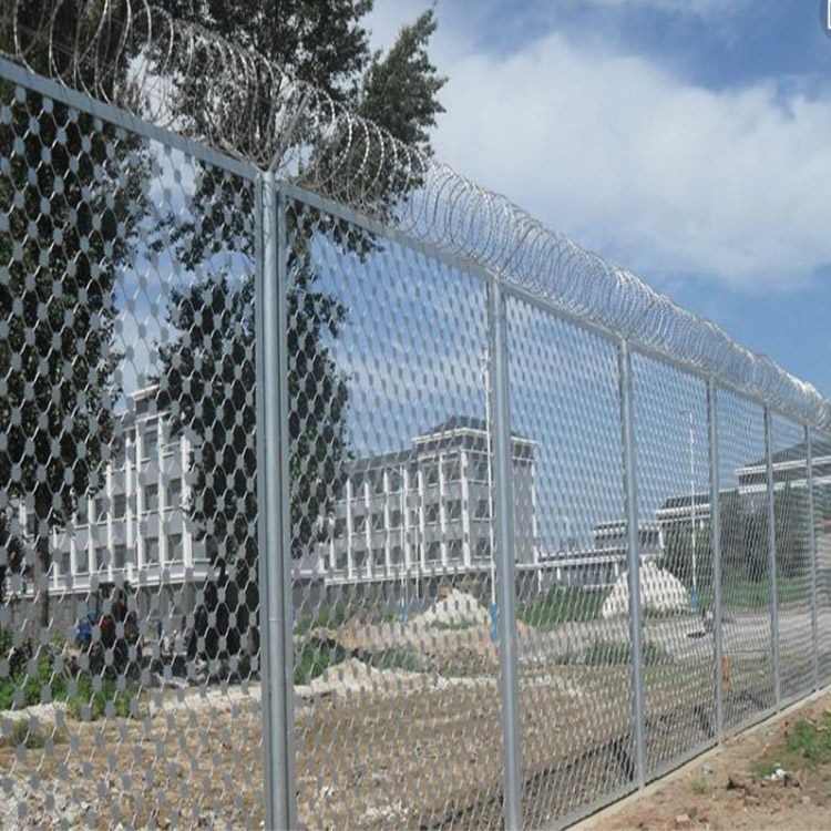 監獄護欄網又稱作“Y型安全防御護網”監獄鋼網墻,是由V型支架立柱,加強型焊接片網,安全防盜連接件和熱鍍鋅刀片刺籠組成強度和安全防御性級別很高,近年來,被廣泛應用在監獄,機場,軍事基地等高安全場所。