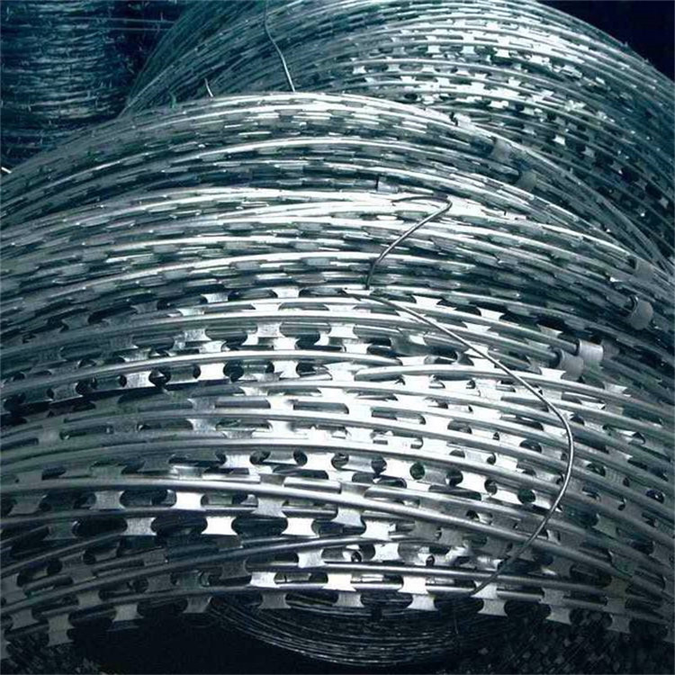 刀片刺網作為一種新發展起來的防護、隔離能力較強的新型防護網產品,又名刀片刺繩、蛇腹型刀刺網、刺絲滾籠等。其鋒利的刀型刺由雙線扣裝后成蛇腹狀,既美觀又讓人不寒而栗。起到了很好的震懾阻嚇作用,使人望而生威,不敢攀爬。