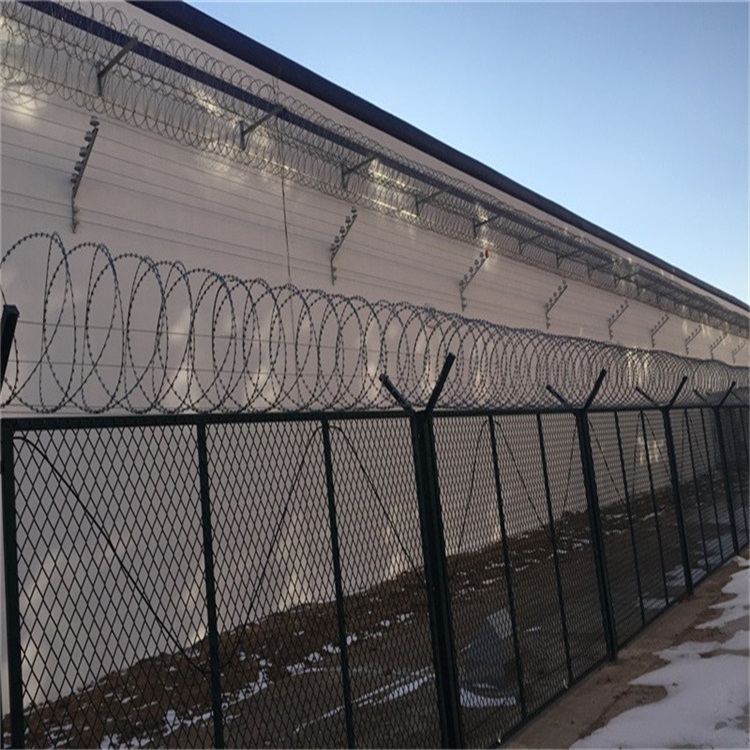監獄鋼網墻是一種新型防護網,這種新型刀刺護欄網由蛇腹式刀刺網和焊接刀片刺網網片或有鋼絲焊接的網片組成。監獄隔離網可平地安裝,也可在圍墻上二次安裝,有效防止攀逃。直刺式刺網隔離帶,是用柱體和普通刺繩橫、縱、斜向交叉綁定成刺網隔離帶。主要用于特殊地帶、軍事基地圈護、溝壕圈護,安裝簡易,經濟耐用。