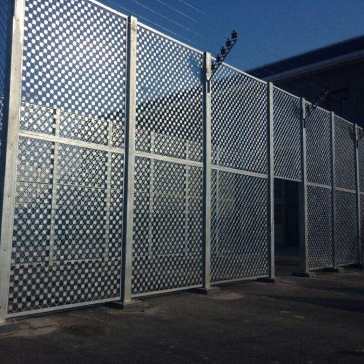 安徽監獄護欄網可采用焊接網片式的、即正方形或者長方形網孔,網孔不宜過大,50*50mm,50*100mm,50*150mm,50*200mm,60*120mm 絲徑不宜太細,一般不低于 5.0mm,比如:5.0mm,6.0mm邊框:一般使用方管或者角鋼,方管如 20*30、30*30,,40*40mm,30*50mm,厚度 1.0、1.5;角鋼如 40*4mm、50*5mm立柱:大部分做成 Y 型立柱,頂部架設刀刺網,多用方柱,如 60*60mm,80*80mm,60*80mm,厚度 2.0、2.5。偶爾有圓柱,如Φ 88mm、Φ 114mm,厚度 2.5 以上焊接刀刺網式的,網孔一般為 75*150mm,50*100mm,材質常用熱鍍鋅和不銹鋼 304。也可選擇連手指都難以穿過的密紋網,(也叫 358 護欄),網孔一般為12.5*100mm,12.5*76mm,絲徑 4.0mm 居多還有形狀酷似太陽花的太陽花鋼網墻,有14個刺,手不能握,腳不能爬,大大增強了監獄護欄網的安全性。
