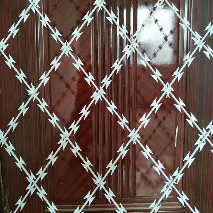 刀片刺網是一種近年發展起來的防護,隔離能力較強的安全防護網產品,鋒利的刀型刺由雙線扣裝后成蛇腹狀,既美觀又讓人不寒而栗,使人望而卻步。因刀片鋒利不易觸摸,手不能握,只要輕輕一碰就會劃傷,腳也不能爬,大大提高了監獄的防護效果。