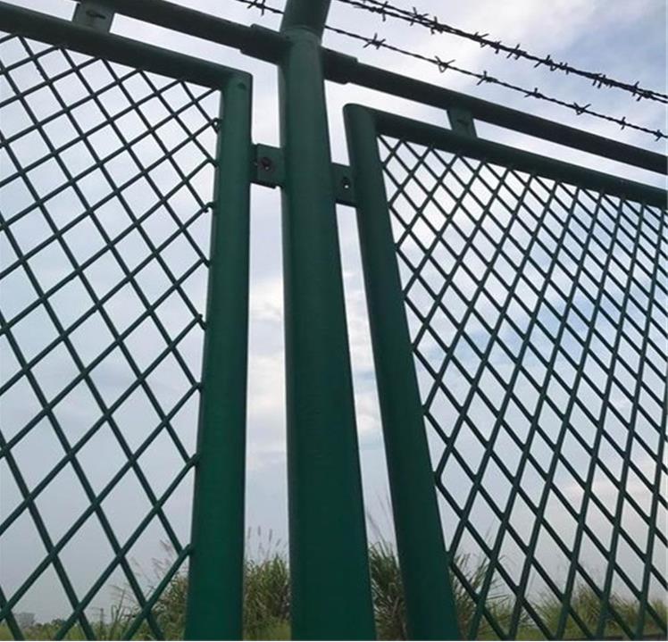 綜合保稅區圍墻金屬網:采用分金屬網狀式,由基座、金屬網狀鋼管架,鐵絲網組成。