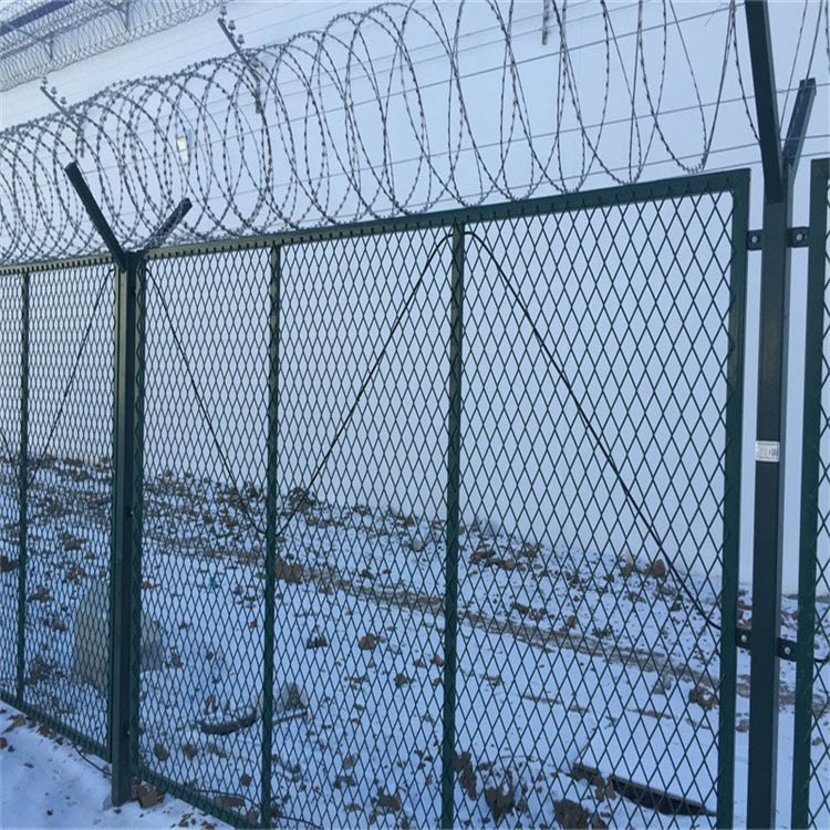 監(jiān)獄護欄網(wǎng)又稱作“Y型安全防御護網(wǎng)”和機場護欄網(wǎng)通用,是由V型支架立柱,加強型焊接片網(wǎng),安全防盜連接件和熱鍍鋅刀片刺籠組成強度和安全防御性級別很高。監(jiān)獄護欄網(wǎng)可平地安裝,也可在圍墻上二次安裝,有效防止攀逃。直刺式刺網(wǎng)隔離帶,是用柱體和普通刺繩橫、縱、斜向交叉綁定成刺網(wǎng)隔離帶。監(jiān)獄護欄網(wǎng)主要用于特殊地帶、軍事基地圈護、溝壕圈護,安裝簡易。