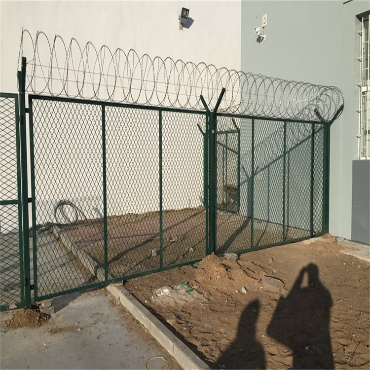 簡介—— 監獄防護網是一種新型防護網,由銳利尖角鍍鋅鋼板或不銹鋼薄板做刀片,鋼絲做芯線組合而成的防護器材該產品具有嚇阻、防翻越等效果,材質堅硬,高強度,高張力,造型設計獨