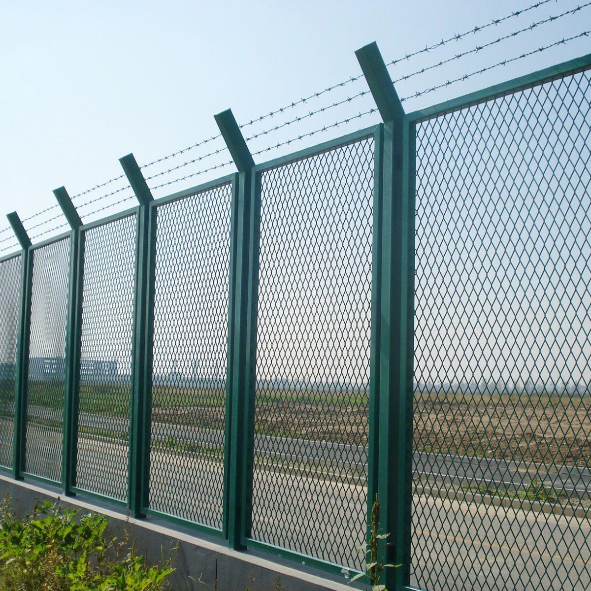 保稅區(qū)封閉圍網(wǎng)通常采用金屬網(wǎng)狀結(jié)構(gòu),由基座、金屬隔離網(wǎng)立柱和鐵絲網(wǎng)三部分組成。底部基座以上為內(nèi)磚外水泥砂漿羅面或澆注水泥式基臺(tái),高度在0.35至0.5米之間。中部為金屬姜型網(wǎng)狀鋼管架結(jié)構(gòu),鋼管與金屬網(wǎng)的間距以及金屬網(wǎng)與底部基臺(tái)的間距均不得大于0.05米。鋼管(或方鋼)的高度不低于2.5米,厚度不小于1.2毫米;金屬網(wǎng)高2.2米,寬1.5米,網(wǎng)絲直徑不小于4.5毫米;網(wǎng)孔一般采用75x150毫米規(guī)格。上部為三根橫排帶刺鐵絲網(wǎng),每根鐵絲網(wǎng)的間距為0.1米,或者在高度為0.3米的金屬網(wǎng)上。
