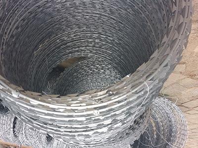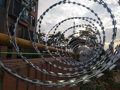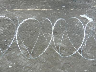 院墻加高刀片網(wǎng) 監(jiān)獄防護(hù)刀刺網(wǎng) 刀片刺繩現(xiàn)貨供應(yīng) 刀片刺繩主要材質(zhì)是由...