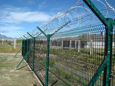 鐵絲網圍欄也可稱作:荷蘭網、牛欄網、鐵絲護欄網、圍墻鐵絲網等。它是由盤條經過拉拔成較細的鐵絲(冷拔絲),然后在經過大型焊接機將鐵絲焊接成型(就是我們俗稱的鐵絲網片)。在配上各種不同的立柱進行連接。構成了美觀大方,防護性能較高的鐵絲網圍欄。由于它的優良特點,安裝簡便被廣泛應用于高速公路、鐵路、機場、體育場、監獄、養殖、果園防護等領域的防護。
